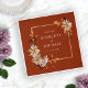 Terracotta Fall Wedding Napkins. Add a refined autumn touch to your reception with these wedding napkins. They feature a delicate fall leaves wreath in hand-painted watercolor shades of burnt orange, terracotta, copper, and rust, accented by cream and beige dahlias. Set against a warm terracotta background, these napkins seamlessly tie your table décor to your wedding theme. Impress your guests with thoughtful details—customize your napkins today.