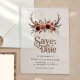 Amaze your guests with this elegant wedding save the date featuring rustic flowers bouquet and stag antlers.