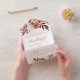 This charming all-in-one wedding invitation features a beautiful autumnal design, adorned with a lush array of rust-colored and muted floral arrangements. Rich terracotta and warm earth tones dominate the watercolor illustrations of dahlias, dried leaves, and various botanicals, creating a cozy and inviting atmosphere. The design is elegantly complemented by modern script and elegant typography for all the wedding details, making it perfect for a romantic fall celebration.
