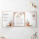 Terracotta Floral Boho Pampas QR Code Wedding Tri-Fold Invitation