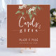 This design features wedding simple modern sign signage, cards and gifts quote saying, with greenery, foliage, leaves, leaf design. minimalist minimal terracotta rust botanical earth tones, great for reception guest bar tabletop sign, a modern calligraphy script text font, elegant trendy stylish typography font, simplistic elegance bar wedding décor, beer wine cocktails spirits list, an elegance simplistic reception guest sign, a custom customize reception signs