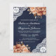 Terracotta Floral Lace Navy Blue QR Code Wedding Invitation