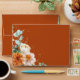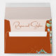 Pretty terracotta wedding envelope with a floral design on the front and your names on the inside.