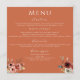 Set the tone for your reception with this terracotta floral wedding menu, featuring romantic watercolor blooms and elegant typography. The rich terracotta background adds warmth and sophistication—perfect for fall, boho, rustic, or modern wedding themes.