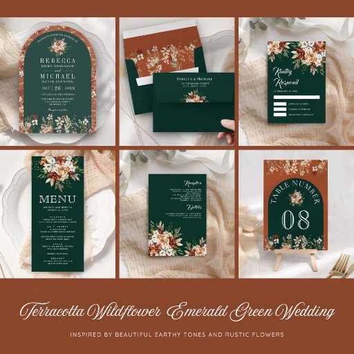 Terracotta Floral Wildflower Emerald Green Wedding Menu