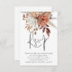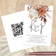 Terracotta Florals QR Code Wedding RSVP Invite your guests to reply online. Beautiful autumnal florals are at the top. Add your QR code to the reply page of your wedding website on the back. An informal set typography in black for the main heading RSVP and the rest of the text which can easily personalise.