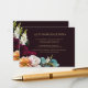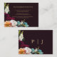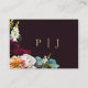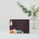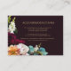 This elegant custom wedding accommodations enclosure card features faux gold script calligraphy on a dark burgundy background with pink, burgundy and peach flowers with eucalyptus. Personalize with your wedding details. The back of the card has your first name initials monogram in faux gold typography bordered by flowers. Best of wishes for your wedding and marriage! Designed by artist ©Susan Coffey.