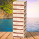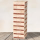 This design features a terracotta calligraphy ampersand script Topple tower game with a simple modern minimalist minimal, a creative elegant simplistic elegance, a wedding reception guest games, a stylish trendy typography design, a simple block style lettering font, fun wedding guest activities, a wedding reception party grooms dinner, a bachelor bachelorette party games, a rehearsal dinner get together party