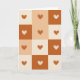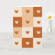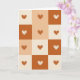 This design shows a 3x3 grid of nine squares, each one holding a single heart, arranged like a neat checkerboard. The colors switch between deep terracotta, soft peach, and creamy off-white, giving the whole card a warm, cozy look. In every square, the heart is slightly uneven, like it was drawn by hand, which makes it feel more human and sweet. Some hearts are filled with terracotta and outlined in white on lighter backgrounds, while others are creamy and outlined in terracotta on darker backgrounds. The simple back-and-forth of light and dark hearts makes the pattern easy to look at and quietly romantic 💕. There isn’t any text on the front, so the hearts and colors do all the talking ❤️. It feels calm, friendly, and perfect for a note to a partner, friend, or family member. Share it to help someone feel loved this Valentine’s Day 😘.