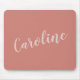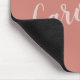 Simple mouse pad with modern and elegant personalized name design in blush hand lettering on a soft terracotta background.