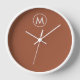 Minimalist White Monogram Emblem Terracotta Background Home Office Kitchen Living Room Bathroom Clock