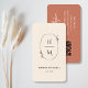 Terracotta colored throw pillow with a white floral oval shaped wreath design with a simple monogram in decorative boho typography.