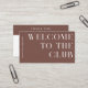 Eye-catching modern design has a minimalist solid terracotta background with your name or company name and "welcome to the club". Background color can be personalized. Add your loyalty terms on the back with room for ten punchouts. Minimalist design for any type of business. This fully editable double-sided business card template is sure to enhance and elevate your brand. Simply change color, text and logo to make it work for you.