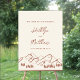 Terracotta Mountain Pine Tree Minimalist Outdoor Wedding Ceremony Welcome Sign Foam Board. All the texts are pre-arranged for you to personalize easily and quickly with your own details.