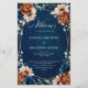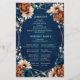 Elegant Navy blue, Terracotta , Orange earthy floral theme wedding program featuring elegant bouquet of Navy blue, Terracotta color roses peonies and green eucalyptus leaves. Please contact me for any help in customization or if you need any other product with this design.