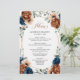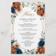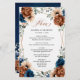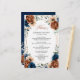 Elegant Navy blue, Terracotta , Orange earthy floral theme wedding menu featuring elegant bouquet of Navy blue, Terracotta color roses peonies and green eucalyptus leaves. Please contact me for any help in customization or if you need any other product with this design.