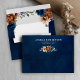 Elegant Navy blue, Terracotta , Orange earthy floral theme wedding envelope featuring elegant bouquet of Navy blue, Terracotta color roses peonies and green eucalyptus leaves. Please contact me for any help in customization or if you need any other product with this design.