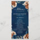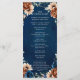 Elegant Navy blue, Terracotta , Orange earthy floral theme wedding program featuring elegant bouquet of Navy blue, Terracotta color roses peonies and green eucalyptus leaves. Please contact me for any help in customization or if you need any other product with this design.