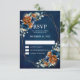 Elegant Navy blue, Terracotta , Orange earthy floral theme wedding RSVP card featuring elegant bouquet of Navy blue, Terracotta color roses peonies and green eucalyptus leaves. Please contact me for any help in customization or if you need any other product with this design.
