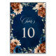 Elegant Navy blue, Terracotta , Orange earthy floral theme wedding table number card featuring elegant bouquet of Navy blue, Terracotta color roses peonies and green eucalyptus leaves. Please contact me for any help in customization or if you need any other product with this design.