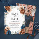 Terracotta Navy Blue Greenery Save the date