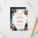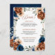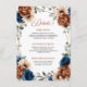 Elegant Navy blue, Terracotta , Orange earthy floral theme wedding details card featuring elegant bouquet of Navy blue, Terracotta color roses peonies and green eucalyptus leaves. Please contact me for any help in customization or if you need any other product with this design.