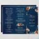 Elegant Navy blue, Terracotta , Orange earthy floral theme wedding tri fold program featuring elegant bouquet of Navy blue, Terracotta color roses peonies and green eucalyptus leaves. Please contact me for any help in customization or if you need any other product with this design.