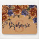 Mousepad with rustic terracotta and navy blue watercolor floral. Personalized with your monogram/initial and name