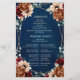 Elegant Navy blue, Terracotta , Orange earthy floral theme wedding program featuring elegant bouquet of Navy blue, Terracotta color roses peonies and green eucalyptus leaves. Please contact me for any help in customization or if you need any other product with this design.
