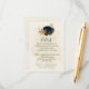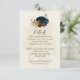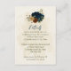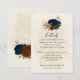 Beautiful earth tone fall wedding reception details enclosure card featuring terracotta, beige and navy blue flowers with green leaves .