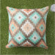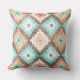Terracotta Orange Mint Green Dark Brown Tribal Art Outdoor Pillow