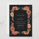 A richly hued floral display in terracotta and deep plum encircles a central dark panel. Lush greenery accents these painterly blossoms, creating a romantic and sophisticated atmosphere. This design evokes an autumnal charm with its warm, earthy tones.