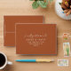 Boho burnt orange return RSVP envelope featuring pampas grass, terracotta and greenery flowers inside.