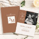 Elegant terracotta Save the Date card with personalized monogram and couple photo. Minimalist design with warm tones, perfect for modern or rustic weddings. Fully customizable and printed on premium cardstock.
