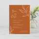 Invite your friends and loved ones to a virtual wedding celebration with this elegant and chic save the date invitation featuring an earth-toned terracotta color scheme with sketchy leaves design. Personalize it with your own wedding details and photo at the back.