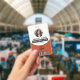 Medical staff terracotta Registered nurse, caduceus photo template Badge with barcode. It features your name, title and photo on white background while the caduceus symbol and the barcode are on terracotta color.