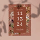Announce your big day with this elegant fall themed save the date card, featuring soft watercolor florals in warm tones of terracotta rose clay, muted clay red, and spiced rosewood. The design blends rustic and romantic elements, making it perfect for autumn weddings with boho, earthy, or modern floral themes. Delicate blush and warm neutral accents enhance the seasonal palette, while the minimalist layout keeps the focus on your special date. Available as a printed card or a digital download.