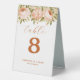 Elevate your wedding reception with this elegant and rustic table tent sign. Featuring a stunning terracotta blooming rose hydrangea floral design, this sign is perfect for a fall or winter wedding. making it easy to place on tables or other surfaces. The front of the sign displays the table number, while the back can be customized with the names of the couple and the wedding date.