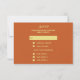 Add an elegant touch to your wedding invites with this terracotta and gold wedding RSVP response card. The front features a rose design along with, "Save the Date," the name of the couple, and the date of the wedding ceremony. Response details are on the back including the deadline for the RSVP and selection of meal choices. Use the template to personalize.