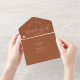 Surprise your loved ones with this elegant invitation, featuring terracotta background, elegant calligraphy and your custom text and QR Code. Easily add your own details by clicking on the "personalize" option.