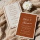 Honestly, this terracotta burnt orange all-in-one invitation is the definition of earthy chic for your desert modern wedding. I'm obsessed! We designed it with that refined, quiet luxury style that feels so expensive but is totally affordable for the happy couple. If you want that old money wedding look without the hassle, this chic modern stationery is for you.