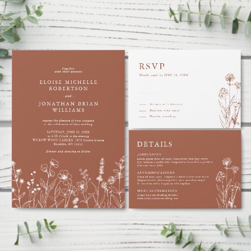 Terracotta Rustic Floral Fall Wildflower Wedding Invitation