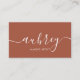 Minimalist business card features big handwritten calligraphy for your name. A feminine look perfect for many professions.