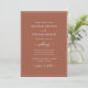 Having your Terracotta Simple Wedding Invitation match the theme of your party is a great detail that your guests will appreciate. The thoughtfulness of a consistent party theme is often appreciated and can show your guests that you can host a cohesive event.