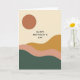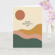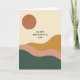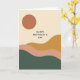 This card features an abstract scene of smooth, organic shapes that feels calm and affectionate, like a quiet moment shared between loved ones ❤️. In the upper left area, a large solid circle in sun-baked terracotta sits like a warm sun watching over the design. Centered below it, the words “HAPPY MOTHER’S DAY” appear in simple black lettering, spaced neatly and easy to read. The lower half is arranged in three gently wavy horizontal bands that resemble rolling hills leaning toward one another in a soft, caring rhythm. The top band is a muted mustard ochre, the middle band shifts into a dusty rose, and the bottom band settles into a deep forest green. With no sharp corners, the flowing curves give the layout a tender, friendly closeness, like an embrace held just a little longer 🌼. The terracotta circle rests above the centered black text, while the three layered waves stretch across the bottom from edge to edge.