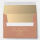 Simple, minimalist, modern terracotta wedding invitation 5x7 envelope with return address and romantic gold rope heart.