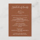 This minimalist wedding schedule card features warm terracotta tones with subtle leaf accents—perfect for outlining your weekend events, from welcome gatherings to the farewell brunch. A stylish choice for boho, desert, or fall weddings.