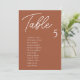 Modern Burnt Orange Wedding Table Seating Chart Cards are the perfect finishing touch for your wedding reception. Guide your guests to their seats with this unique seating chart. The cards are perfect for hanging or displaying on a board or wall. The design features a minimal script font with elegant san serif in white on a burnt orange background. The design is printed on both sides.