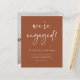 We are engaged! Announce your engagement to family and friends with this customizable photo engagement announcement. It features modern calligraphy and simple typography. This terracotta engagement announcement is available in other colors. Personalize by adding your photos, names and other details.