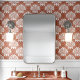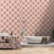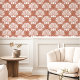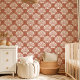 Add a touch of warmth and sophistication to your walls with this trendy terracotta and white wallpaper. Featuring a beautiful scallop shell pattern adorned with dotted pearls, this design creates a chic and inviting atmosphere. This peel-and-stick wallpaper is easy to apply and remove, perfect for renters or those who love to refresh their décor.